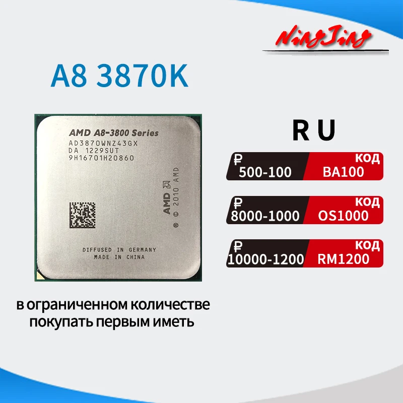 700грн . Купить . +380 показать номер . интернет магазин Alpha POWER . г . Киев . Специальный тариф . Процессор AMD A8-3870K APU 3 .0GHz (AD3870WNZ43GX) Socket FM1 100W . В наличии .