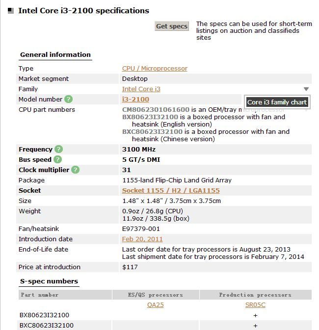 Процессор Intel® Core™ i3-2100 (3 МБ кэш-памяти, 3,10 ГГц) краткое справочное руководство, содержащее спецификации, характеристики, цены, информацию о совместимости, документацию по проектированию, коды заказа, коды спецификации и многое другое .
