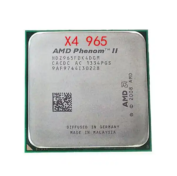 Процессор Phenom II X4 965 , цена нового на amazon и ebay - 97 USD Маркируется производителем как: HDZ965FBGMBOX . Количество ядер - 4, архитектура Deneb . Базовая частота ядер Phenom II X4 965 - 3 .4 ГГц .