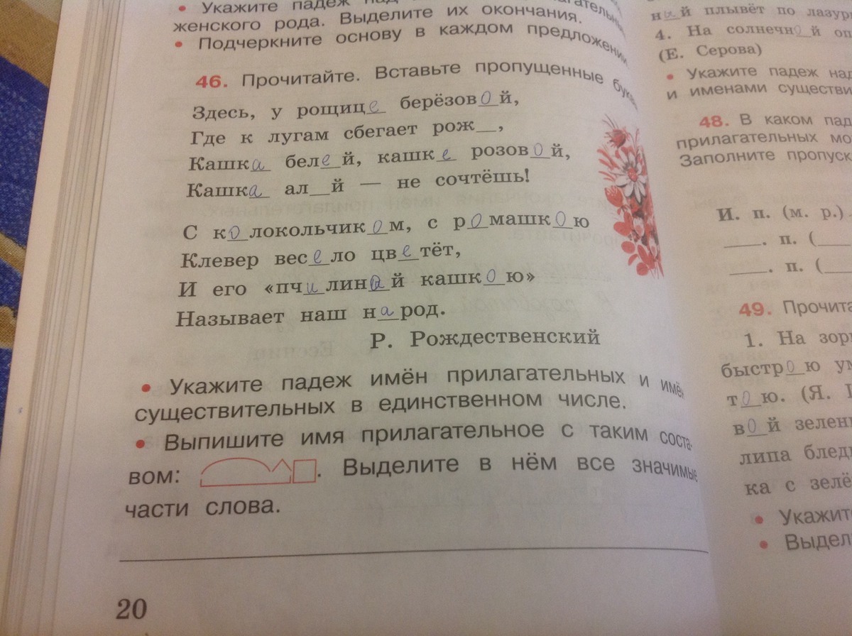 Прочитайте какие окончания пропущены в словах белка 110 фото