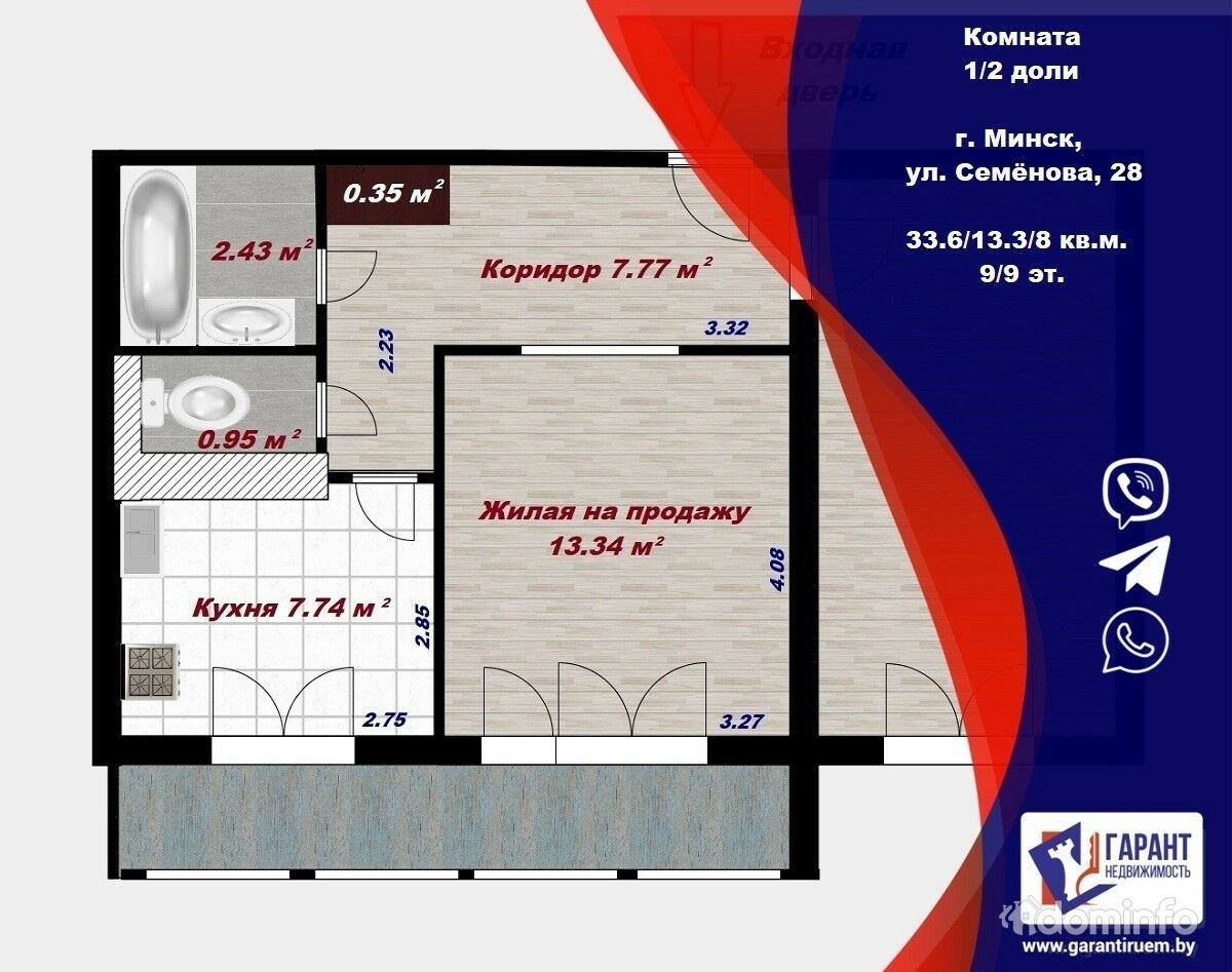 Продать 2 доли в однокомнатной квартире 104 фотографий