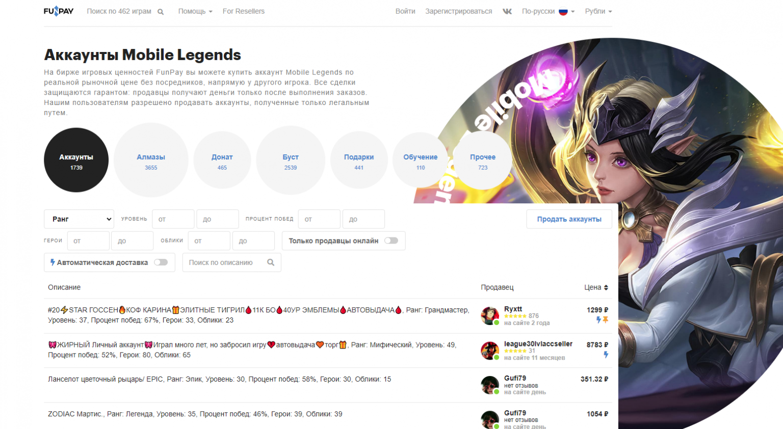 Продать аккаунт мобил