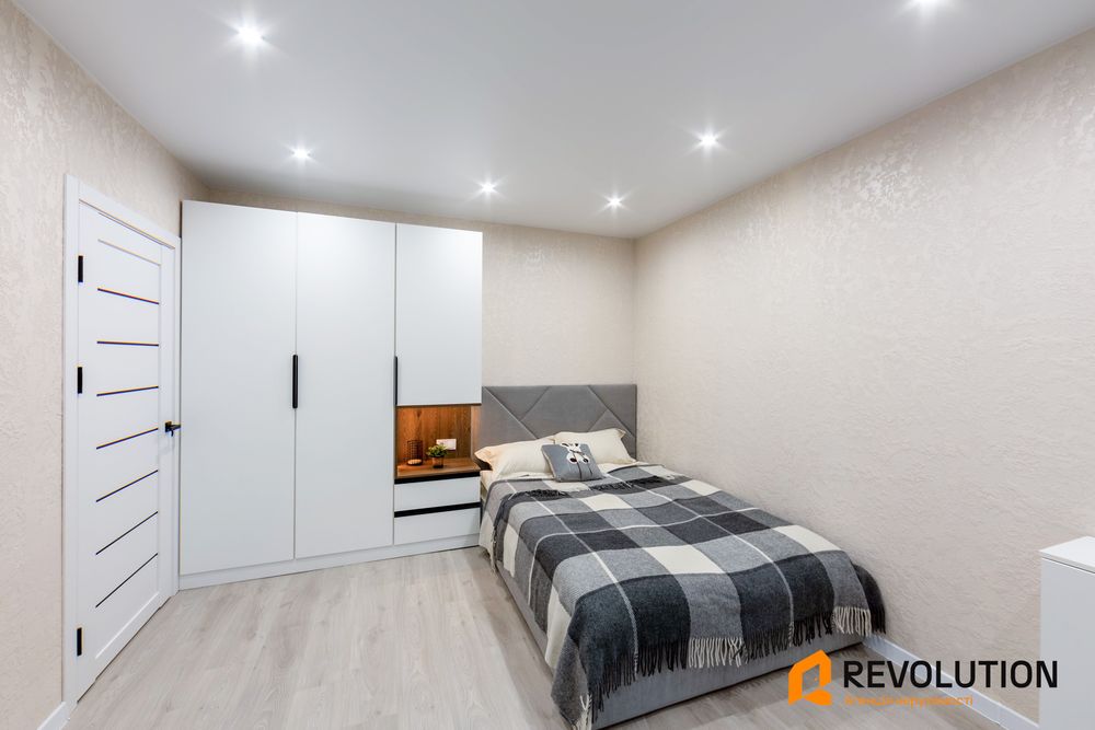 • Мебльована: шафи для зберігання речей, двоспальне ліжко з підйомним механізмом, розкладний диван.