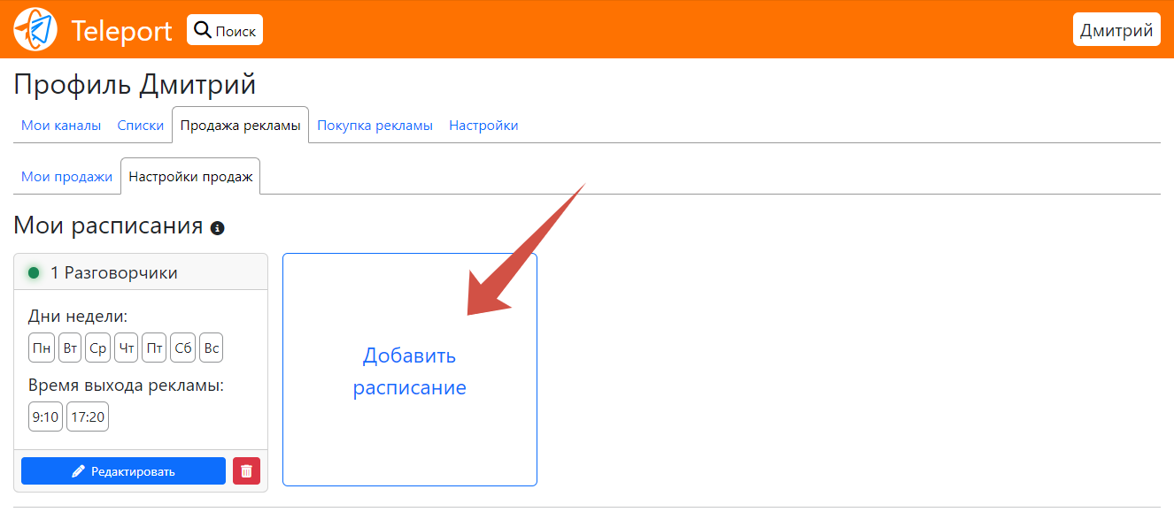 Раздел "Настройка продаж" - Мои расписания
