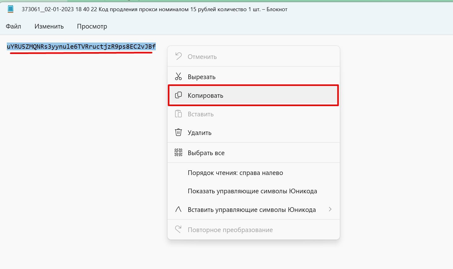После оплаты, вы получите письмо со ссылкой на файл с кодом продления прокси, аналогично файлу с кодом активации нового прокси (https://telegra.ph/Aktivaciya-proksi-01-02), копируем код из файла: