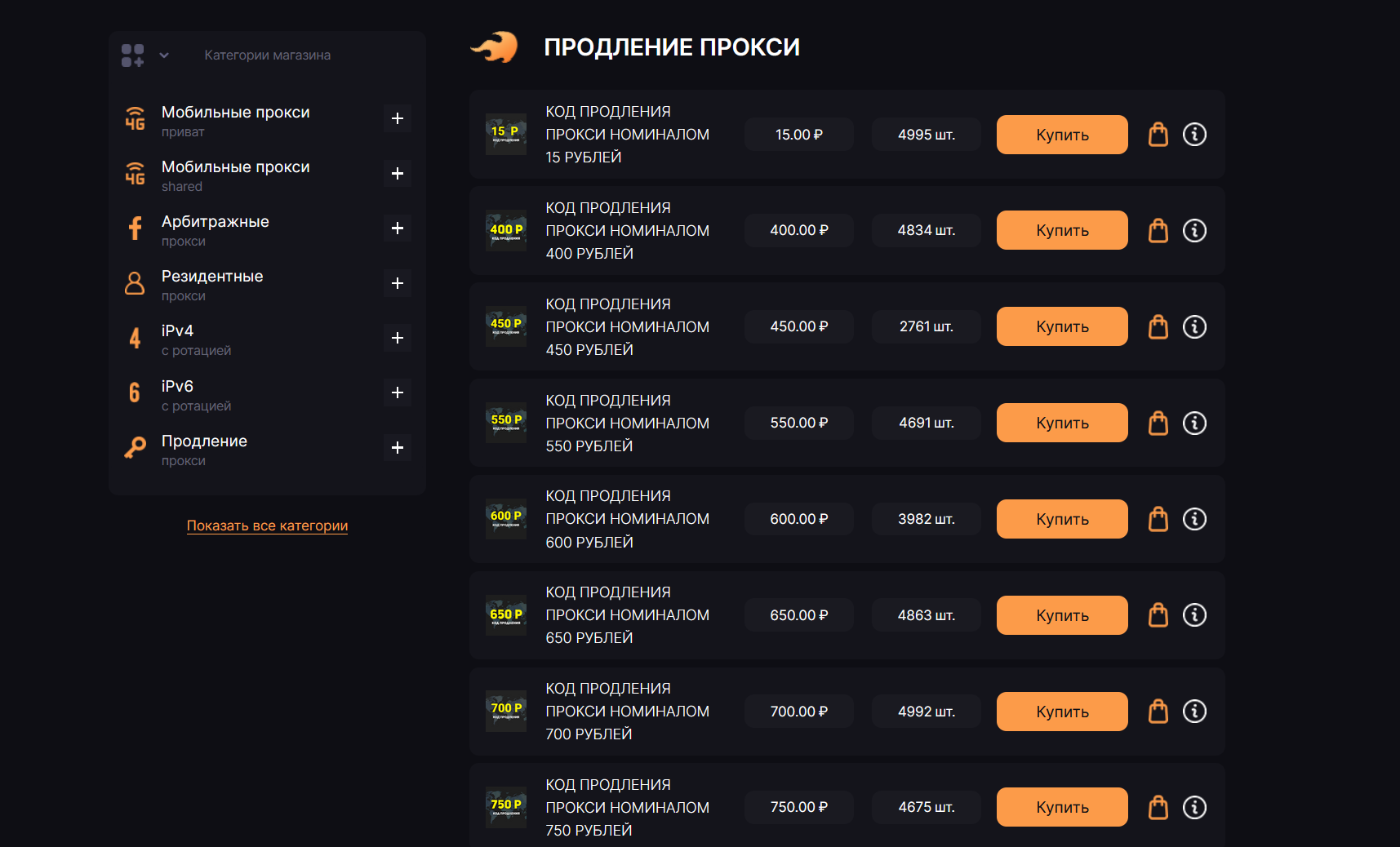 Если же прокси не продлен в вашем списке прокси в боте, и код действительно не найден в системе, напишите нам в чат, скорее всего это рассинхронизация магазина и нашей базы кодов.