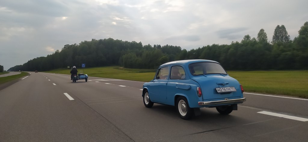 Едем дальше, мотоцикл Игнат и Запорожец Петр ведут себя отлично. Средняя скорость кортежа 70. Куда бы нам заехать по пути?