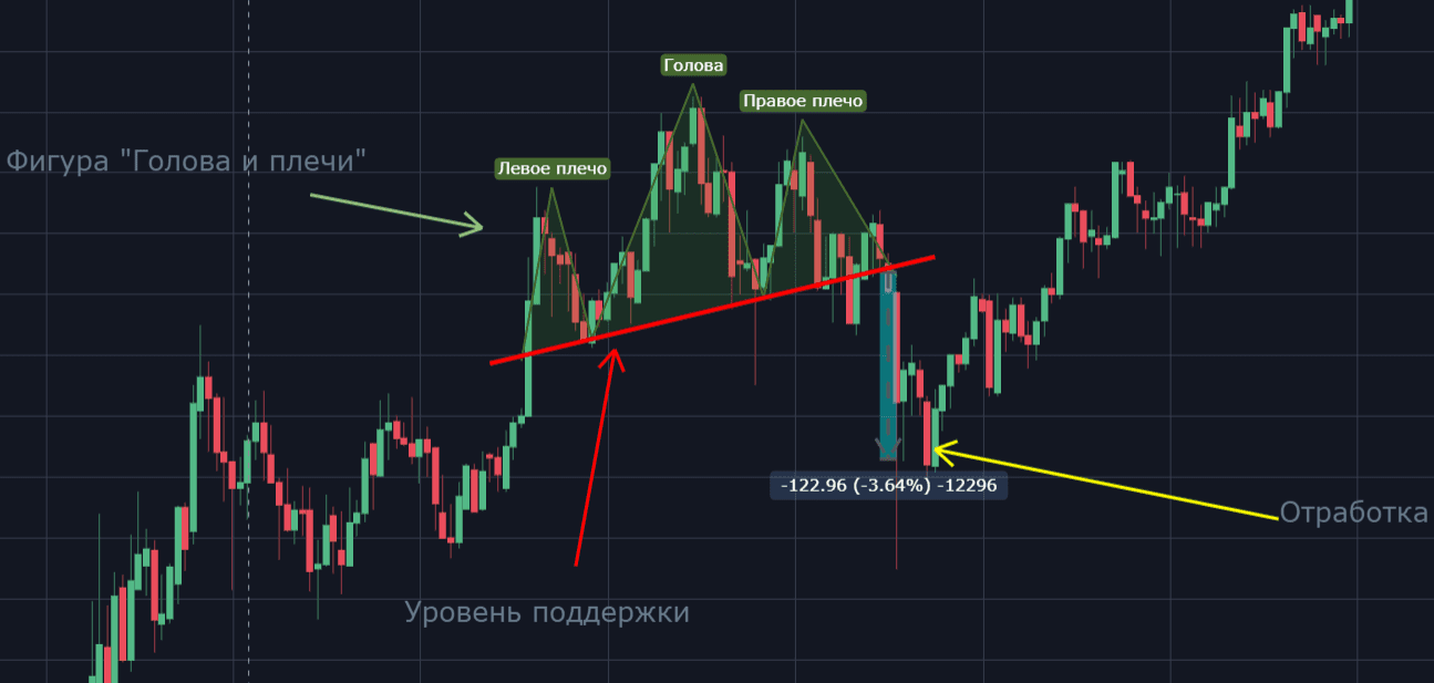 • После точки пробития цена обычно не тестирует линию шеи повторно.