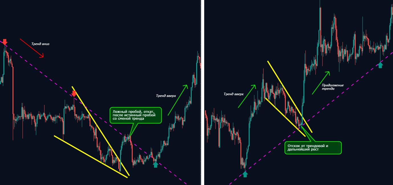 • Однако консервативные трейдеры будут ждать повторного тестирования цены и отталкиваться от поддержки после пробоя. Это подтвердит, что цена окончательно пробила и пойдет на понижение.