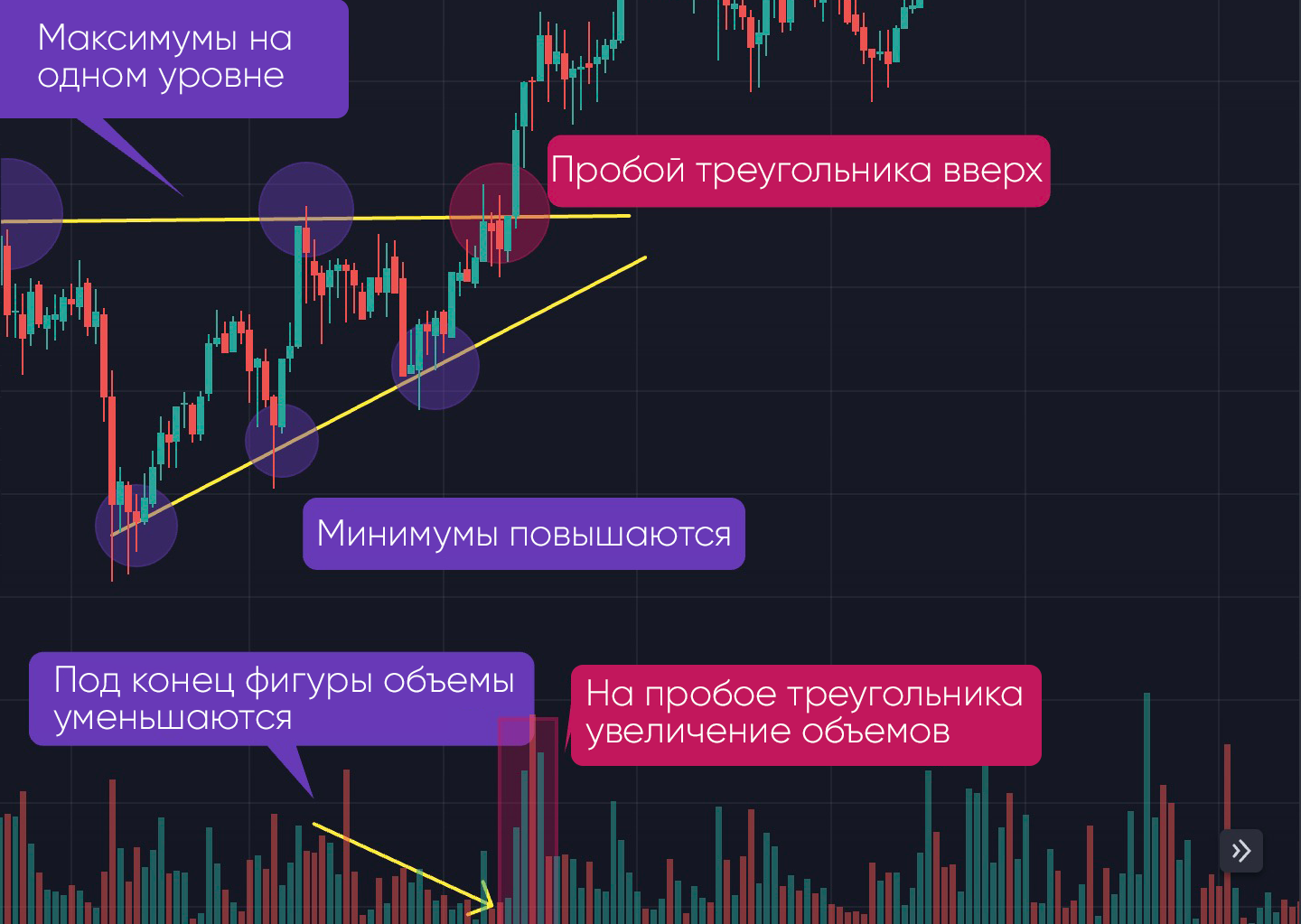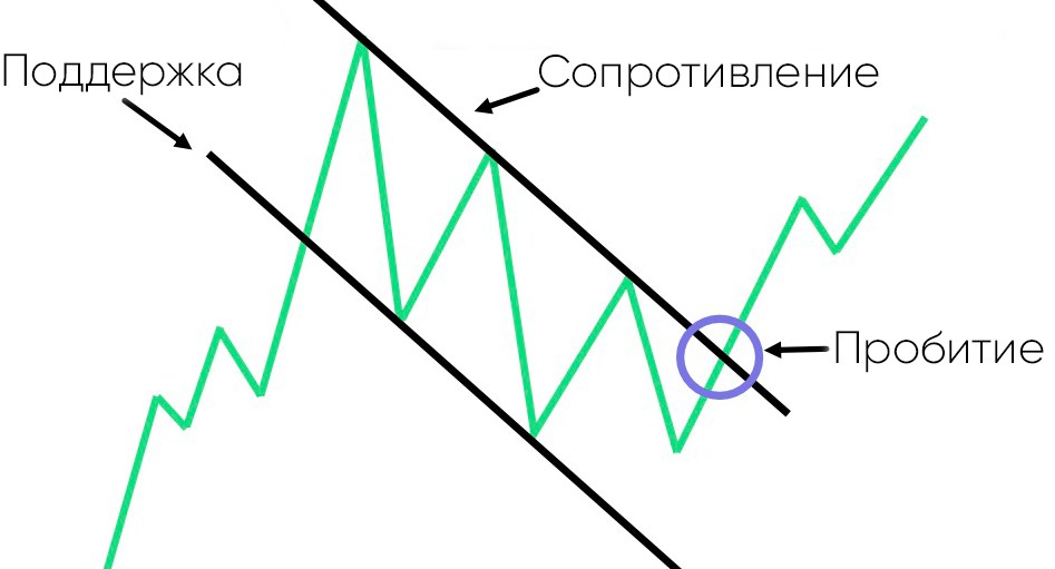 • Появится много покупателей, и объем торгов должен увеличиваться по мере пробоя цены.