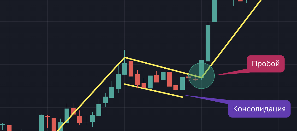 • Прорыв происходит за пределы флага в том же направлении, что и первоначальное движение.