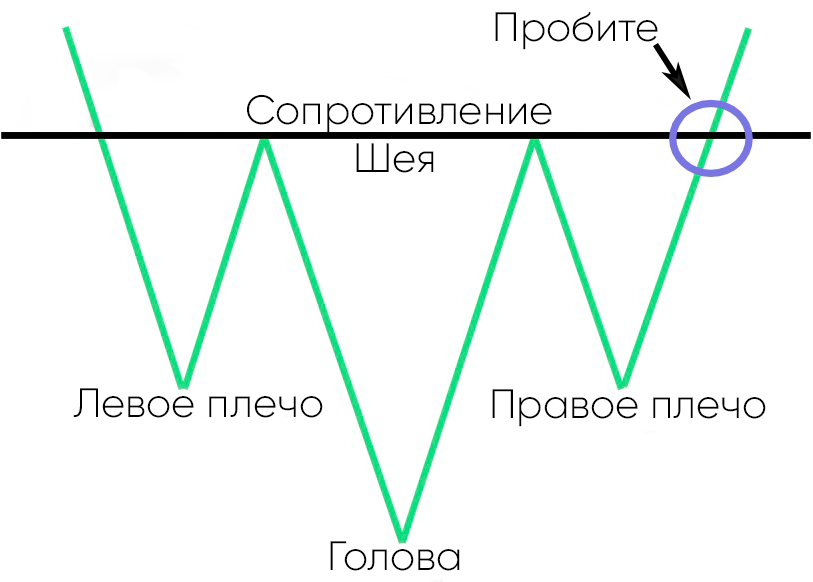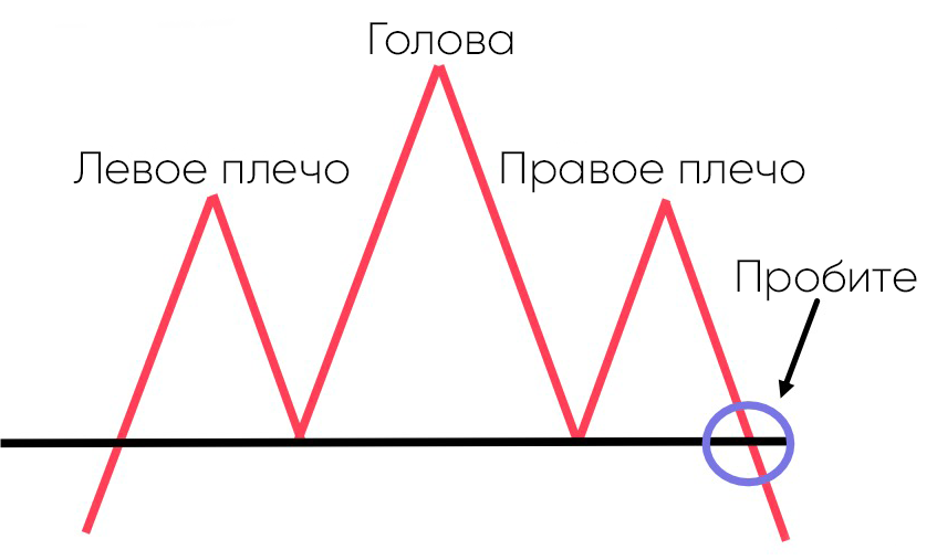 Это когда цена достигает минимумов ниже линии шеи, образуется впадина. Пока не образуются три впадины, или точки понижения: левое плечо, голова, которая является самой низкой, и правое плечо.