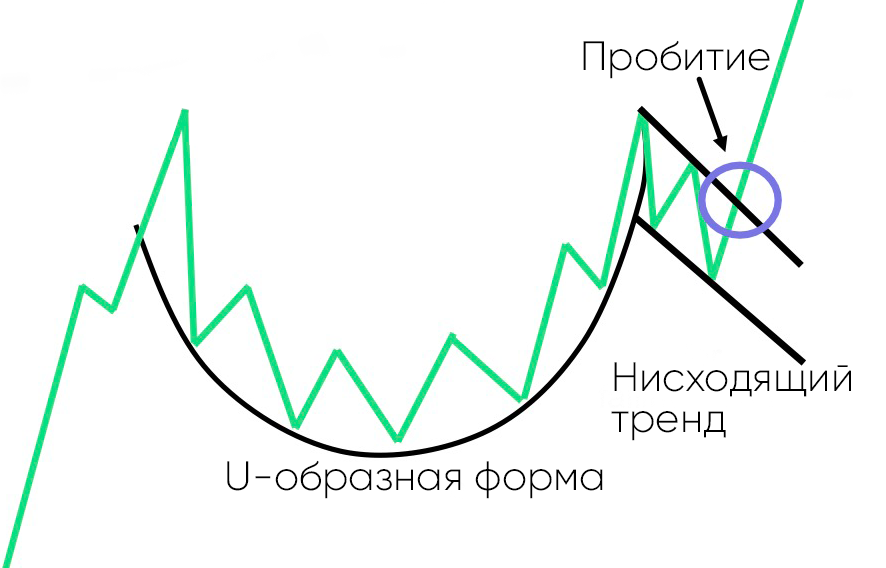 • Это графический паттерн, указывающий на период распродаж, который приводит к падению цены актива до уровня поддержки. Затем цена поднимается до уровня сопротивления, но затем снова падает до предыдущего уровня поддержки. В конце концов, тренд разворачивается, и цена начинает расти, поскольку рынок становится бычьим.