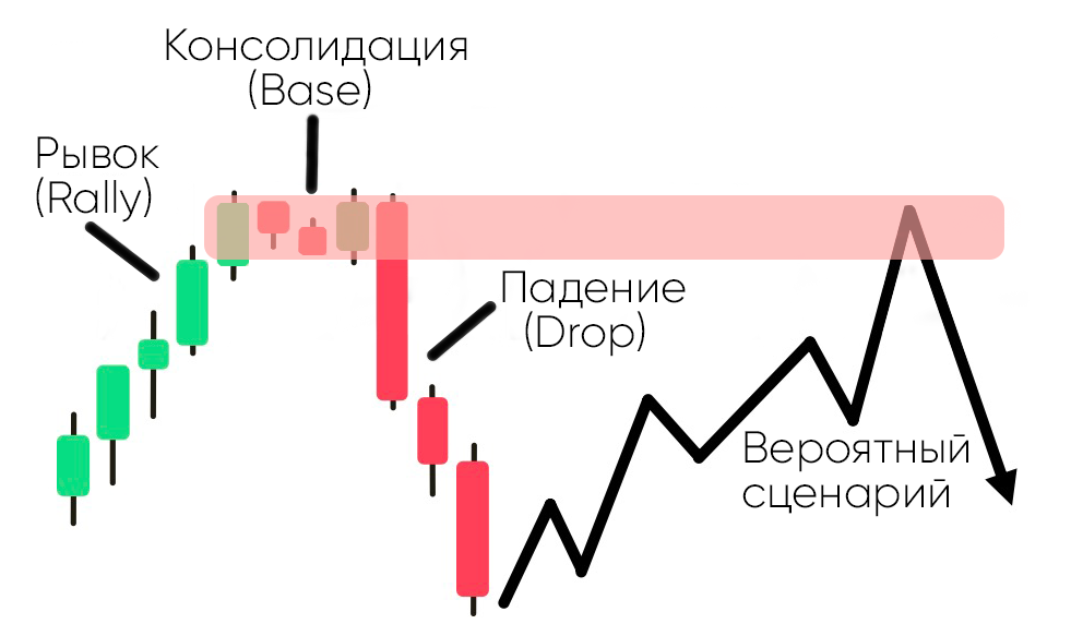 Rally Base Drop - это медвежья разворотная модель в зоне предложения.