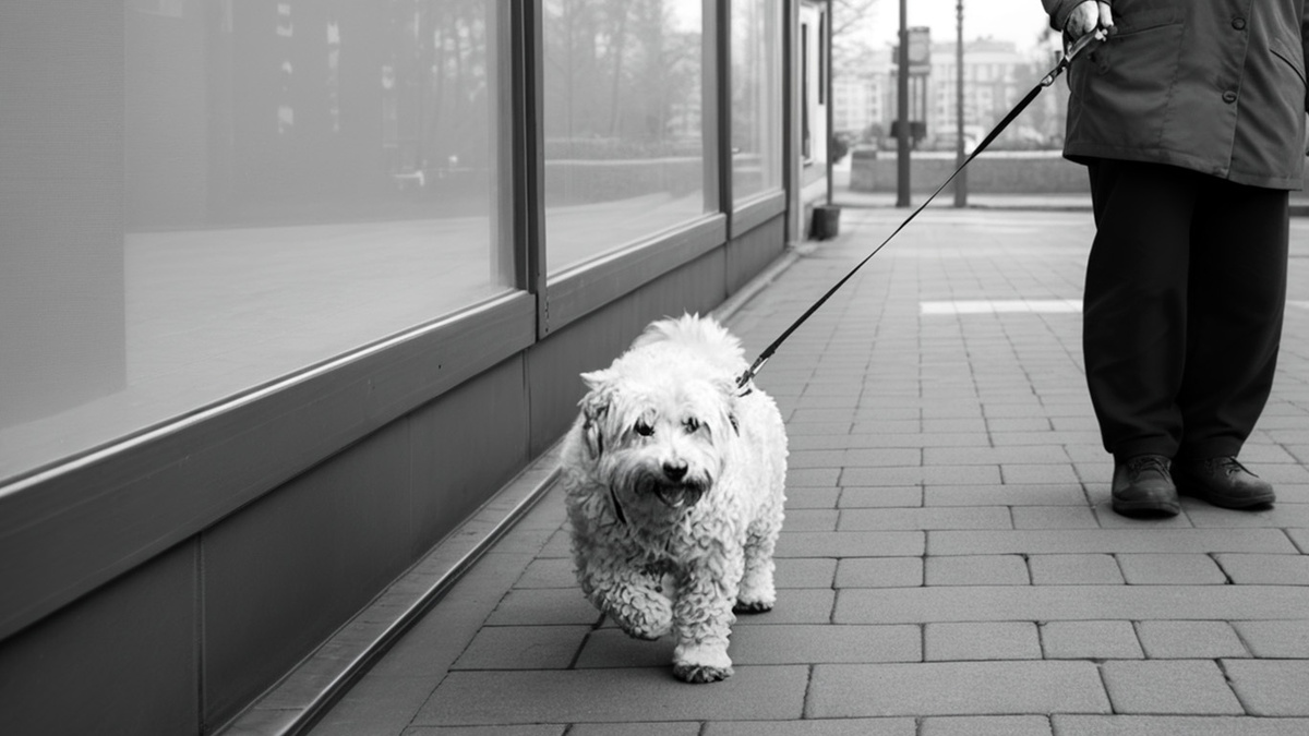 По аллее шел старенький дедушка, в руке его был пакет с продуктами, в другой руке поводок, на конце которого медленно телепалась собачонка.