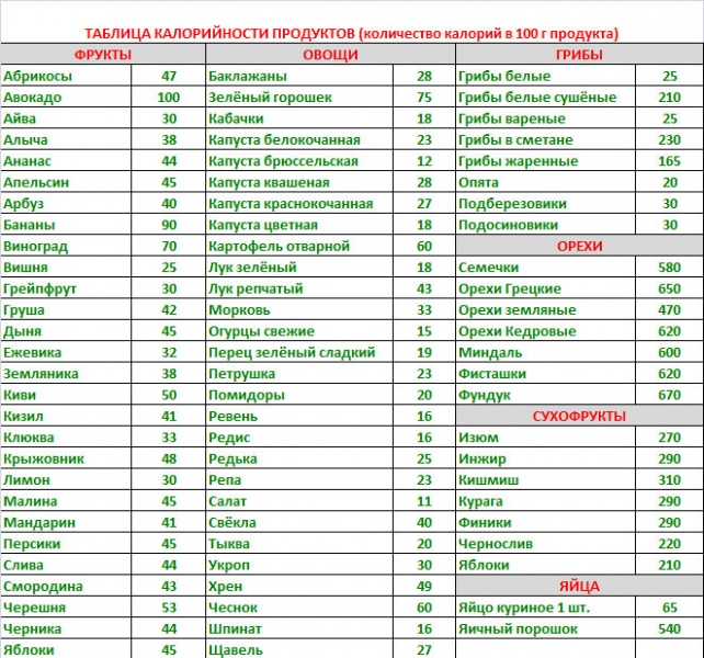 Продукты без калорийности
