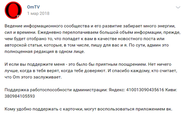 Если вы пороетесь на стенках сообществ, то обнаружите, что он на украинский номер +380984105593 собирает пожертвования на развитие.