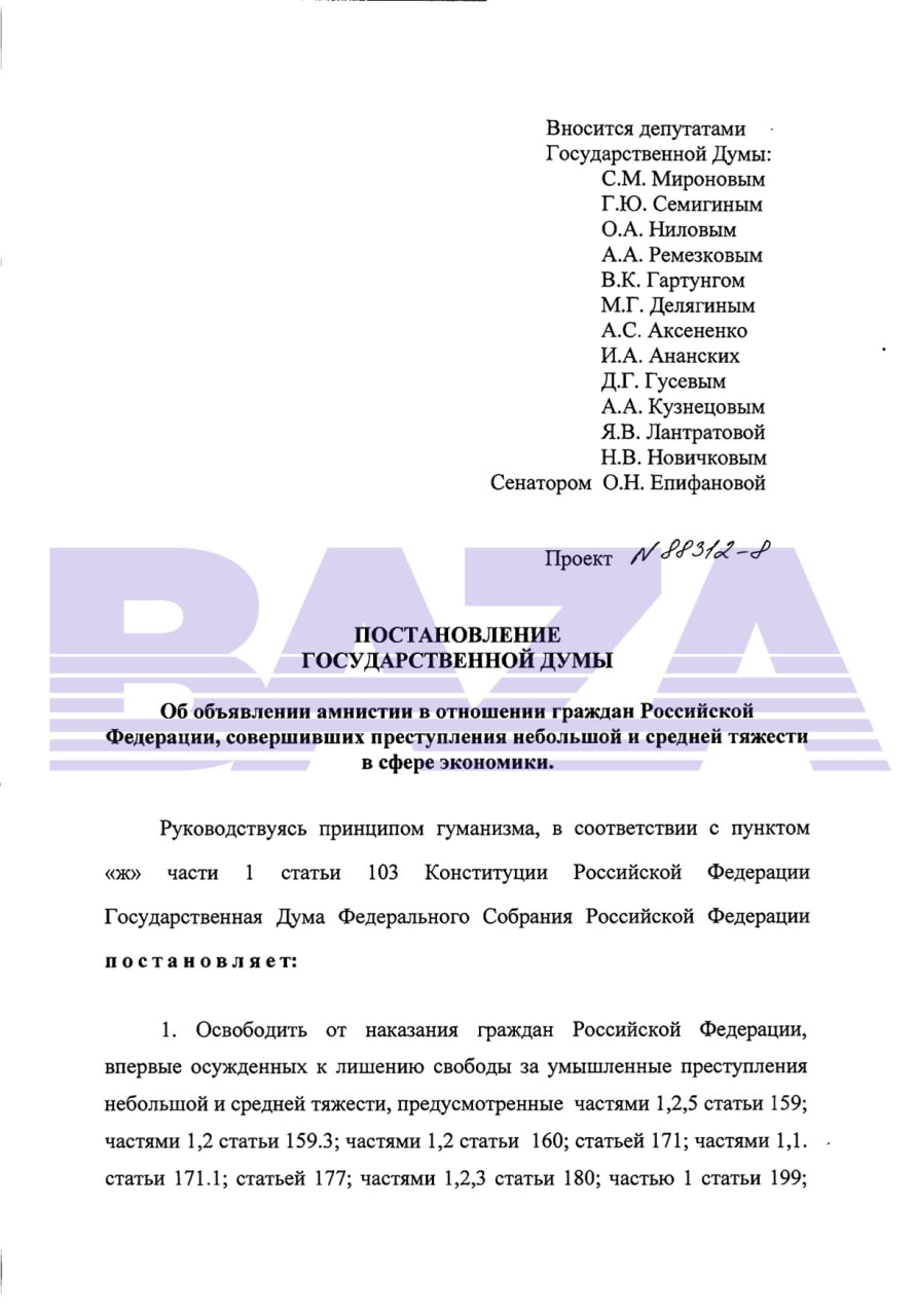 Проект постановления об амнистии 2025