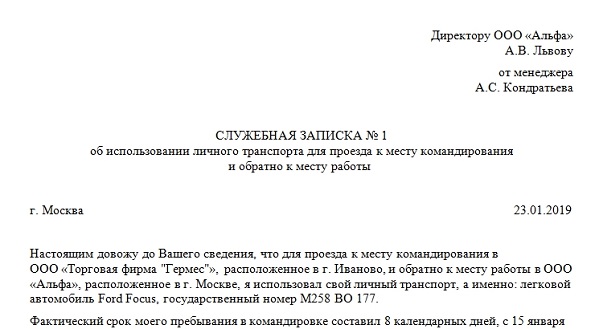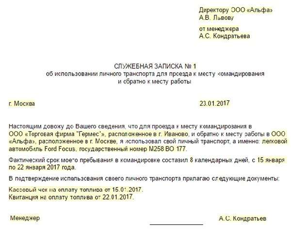 Проезд на работу на личном транспорте