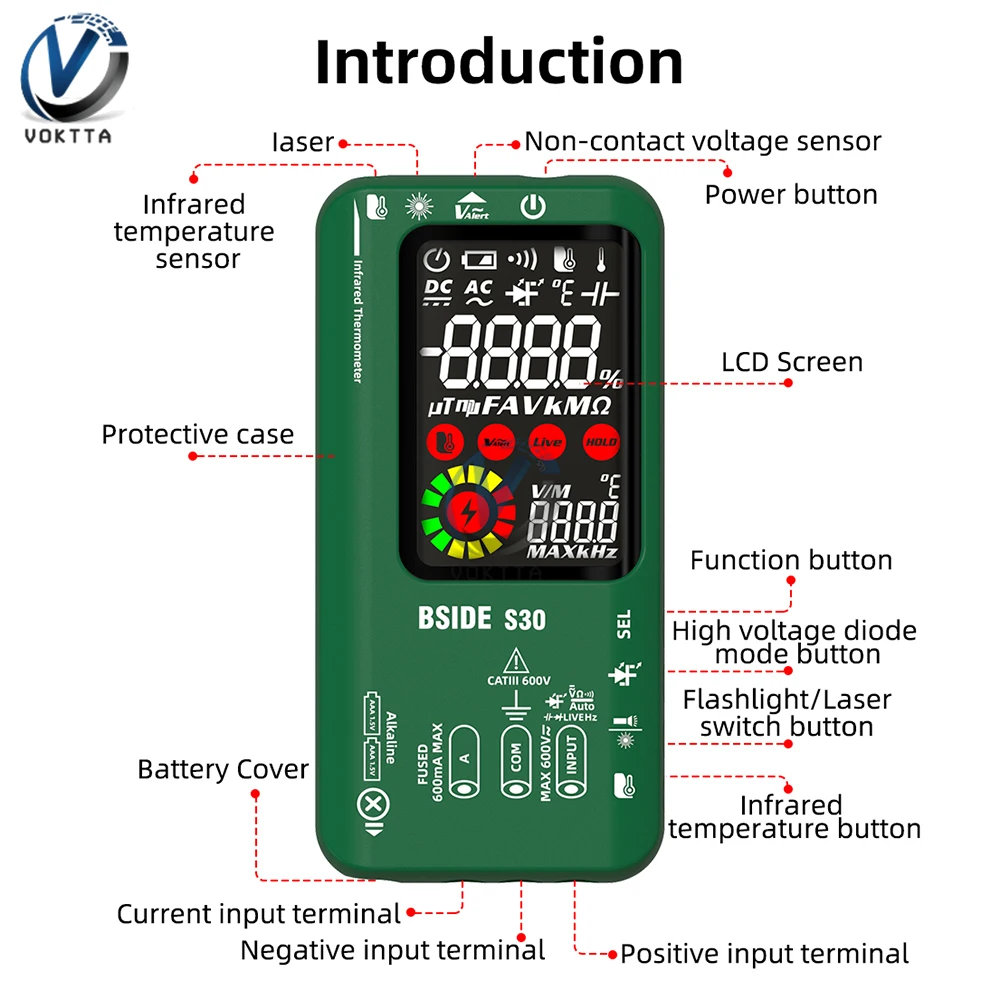 Profesional Digital Multimeter DC/AC Smart Voltmeter Ammeter Infrared Temperature Tester Voltage Capacitance Ohm Diode Tester - Купить с бесплатной доставкой