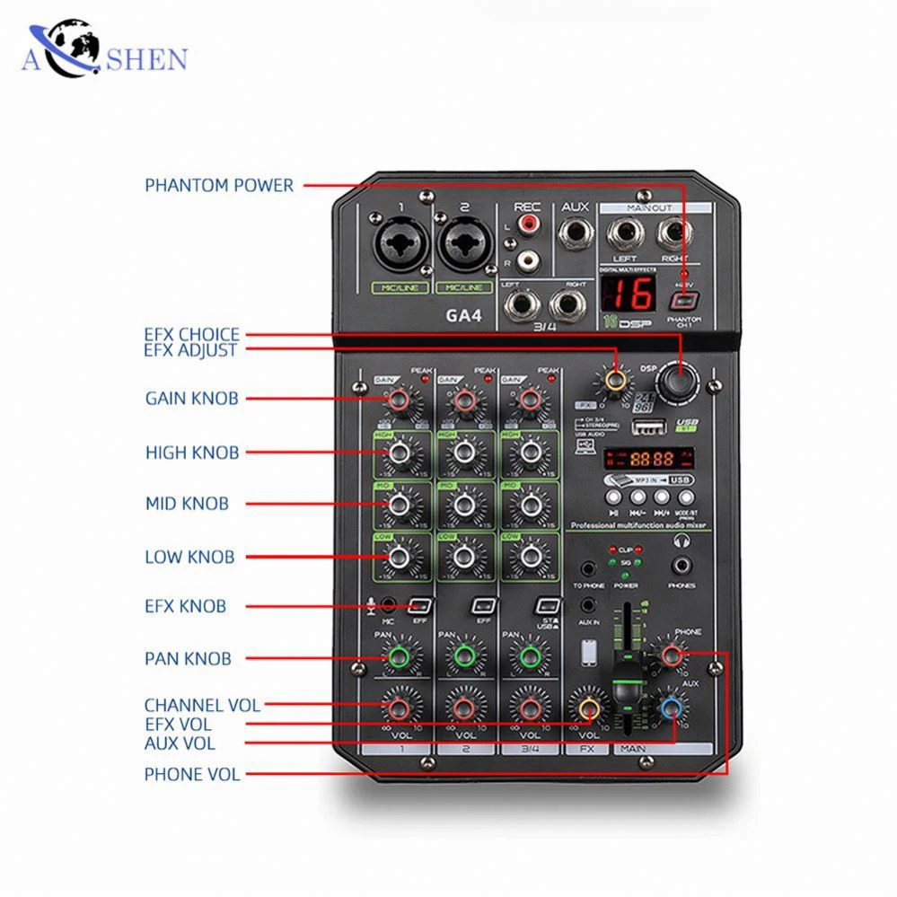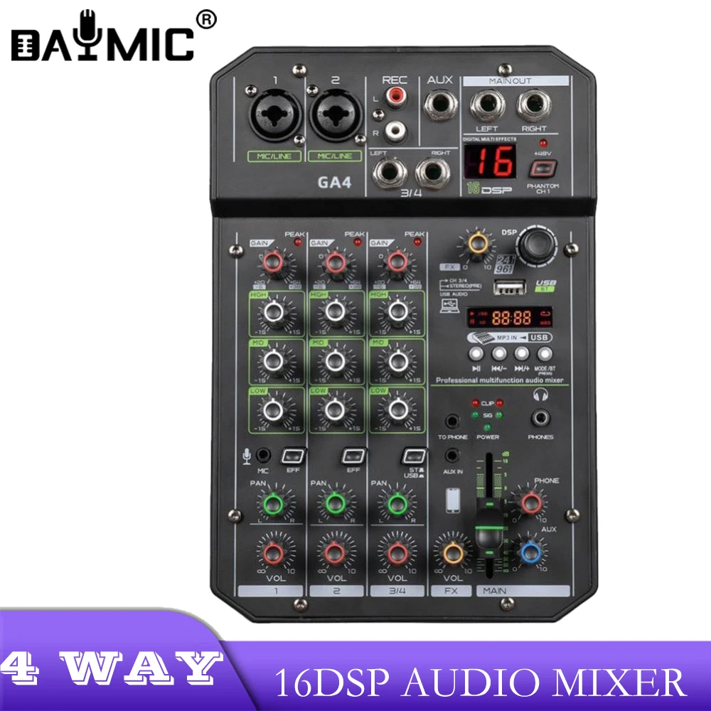 SkbEgTCgwMHere you can buy Professional 16 DSP Effect Audio Mixer 4 Channels PC Audio Interface Mixer With Wireless Connection Recording with free delivery to your post office.