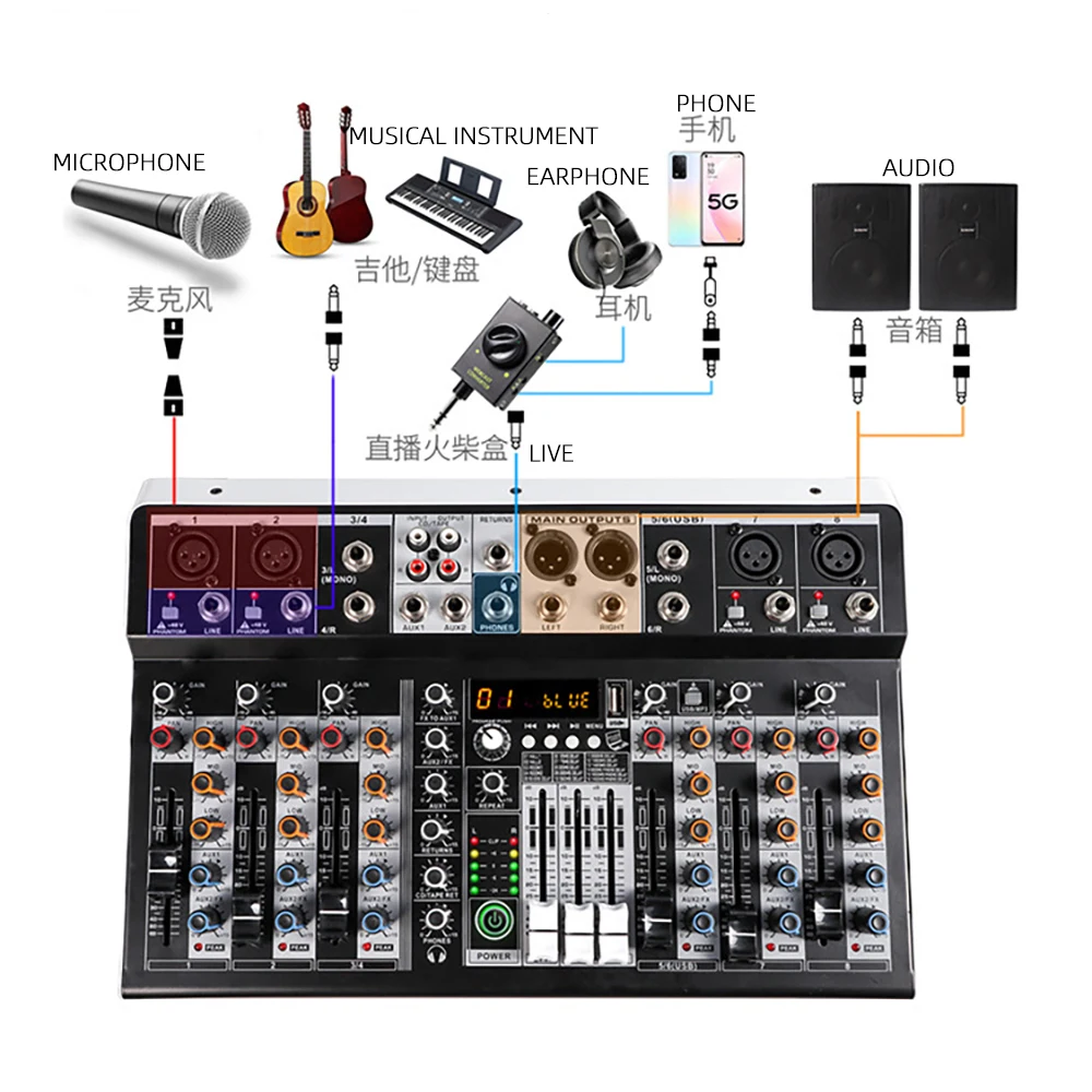 zvHDJplMlTHere you can buy Professional 4 Channel Bluetooth Audio Mixer Sound Mixing Console Audio Interface USB Sound Card for Computer Home Karaoke with free delivery to your post office.