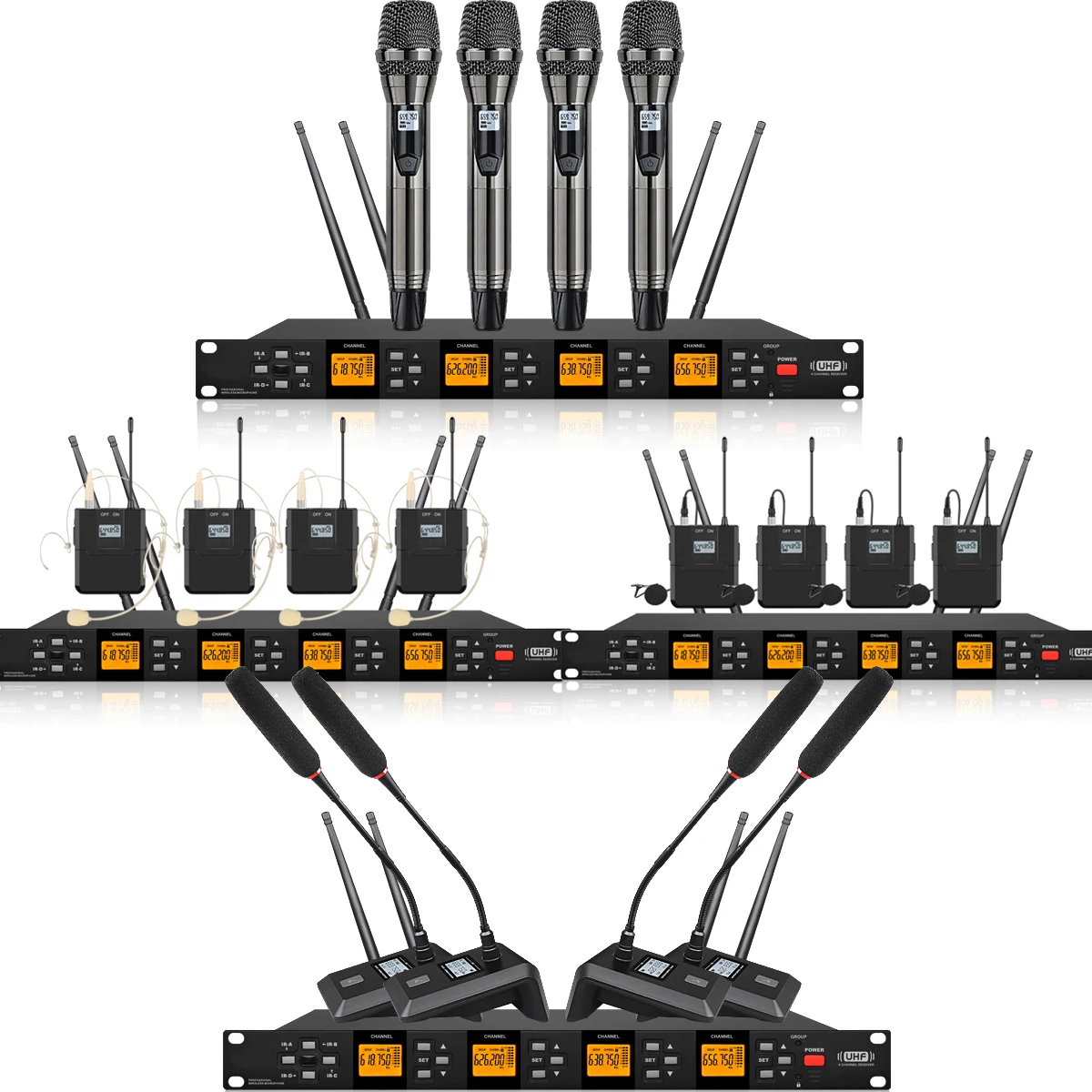 «Professional 4 Handheld Headset Lavalier Wireless Microphone System 200 Channel Adjustable Frequency 200M Long Distance» по лучшей цене на рынке! Всего за 215$ (20425рублей)