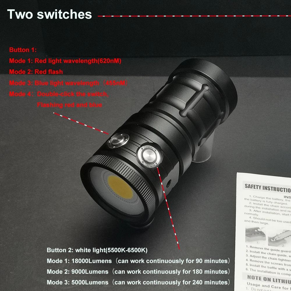 mzIDMybPHere you can buy Professional LED Diving Flashlight 18000Lumens COB Tactical Torch IPX8 Waterproof Video Camera Light White Blue Red Fill Light with free delivery to your post office.