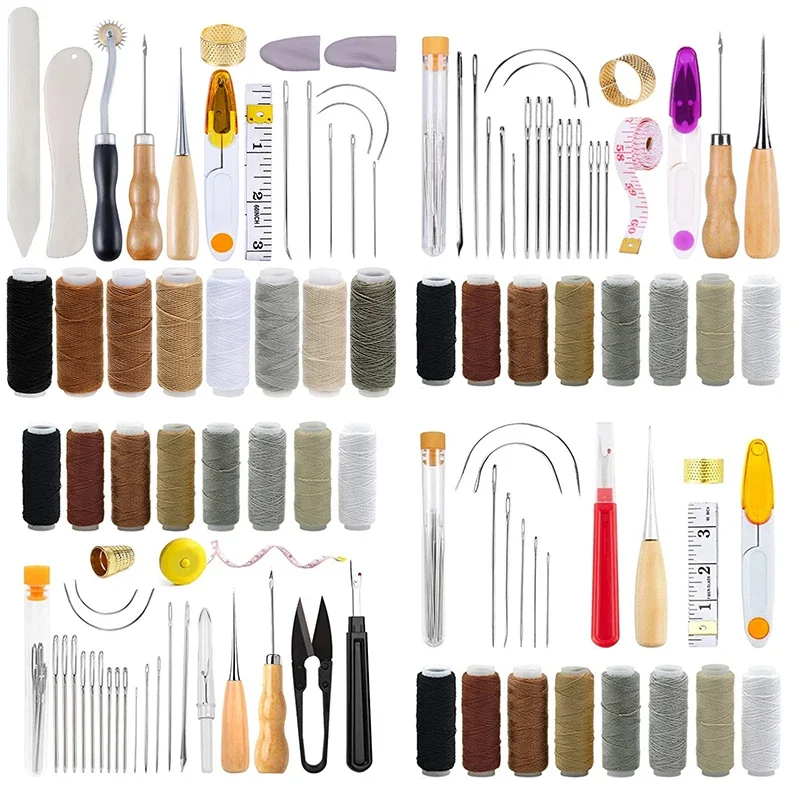 Professional Leather Craft Tools Kit Sewing Kit Waxed Thread Hand Quilting Needles Stitching Punch DIY Leather Tools Set Cuero - Купить с бесплатной доставкой