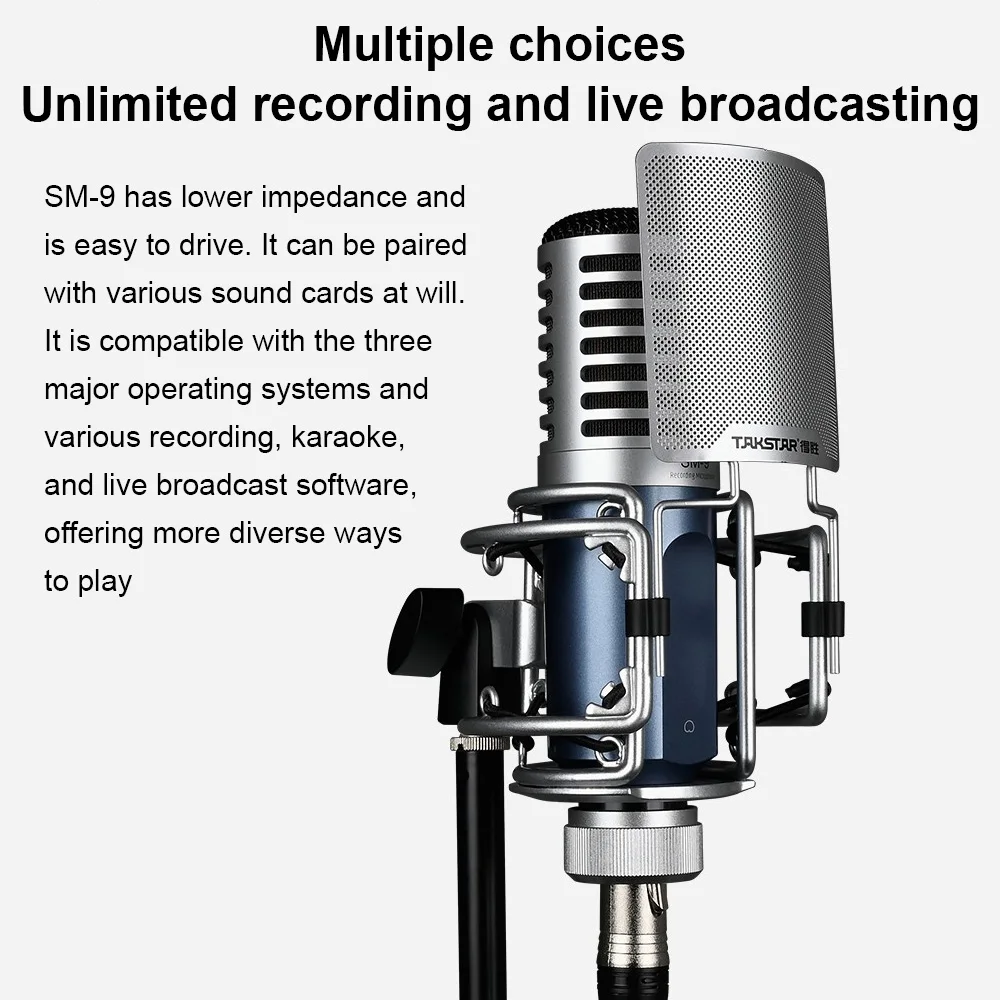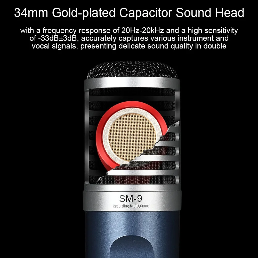BykEzIZazЗдесь вы сможете купить Professional Recording Microphone SM-9 Unidirectional Condenser Microphone Metal Wide Frequency Response with Windshield с бесплатной доставкой до вашего почтового отделения.