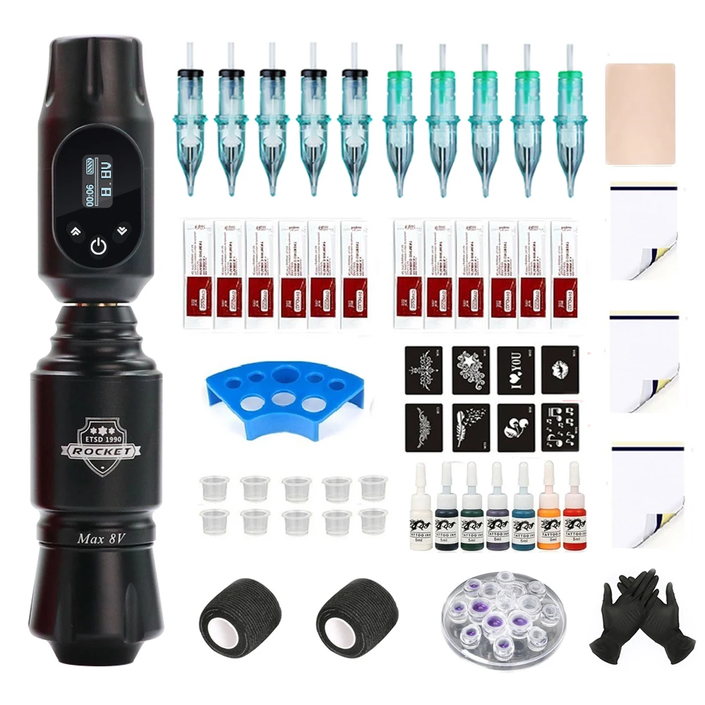 JANUaYQxcHere you can buy Professional Tattoo Machine Kit Complete Rocket Mini Rotary Pen Set Wireless Tattoo Power Supply Ink Accessories for Body Artist with free delivery to your post office.