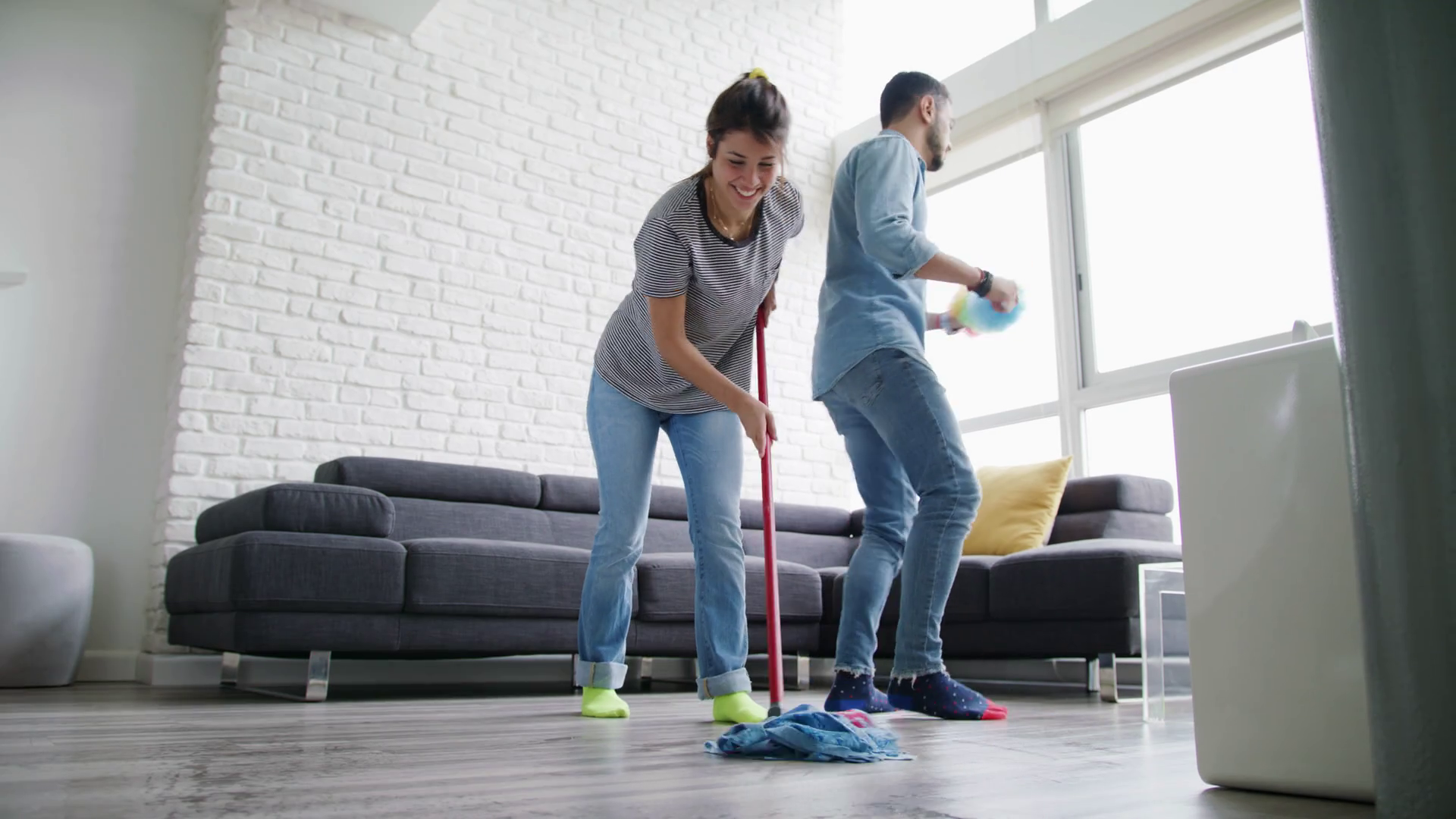 -Professional couple do quicky on the floor