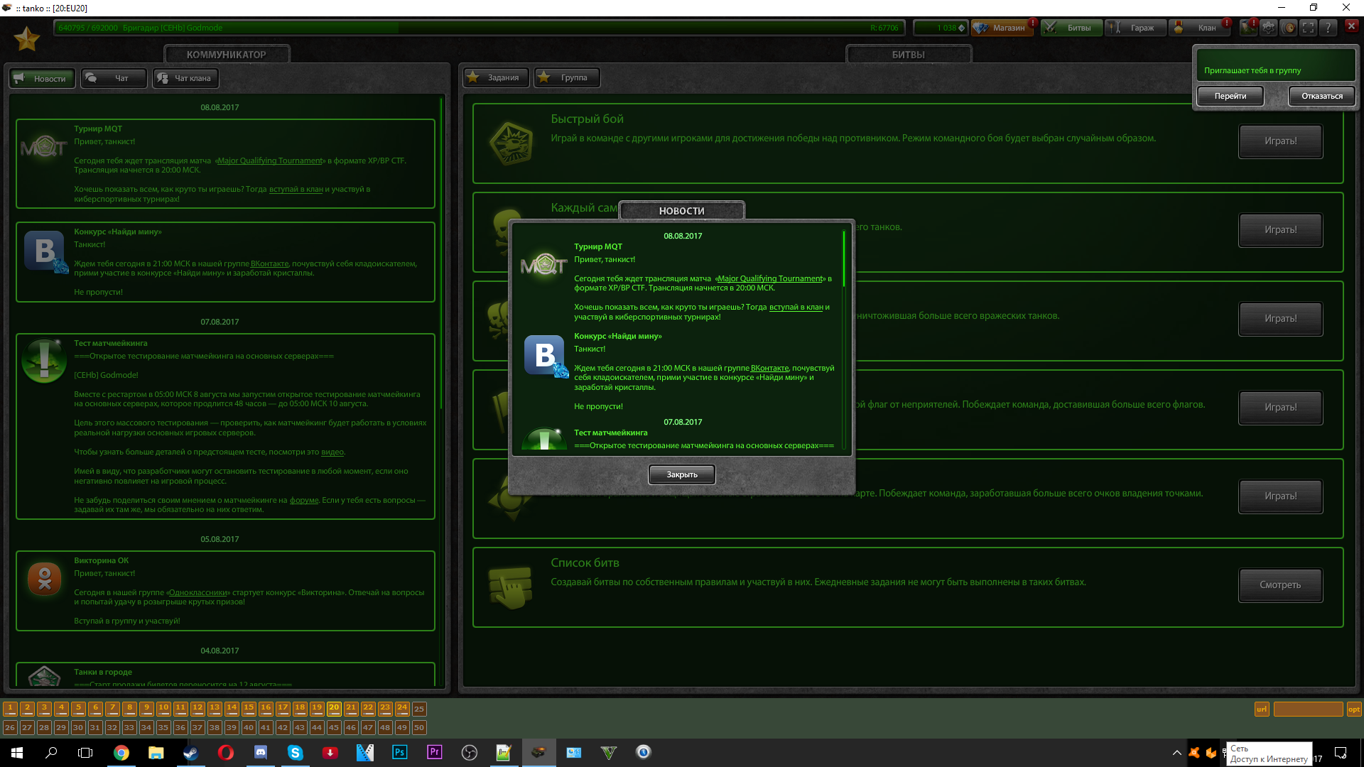Профиль игры танки