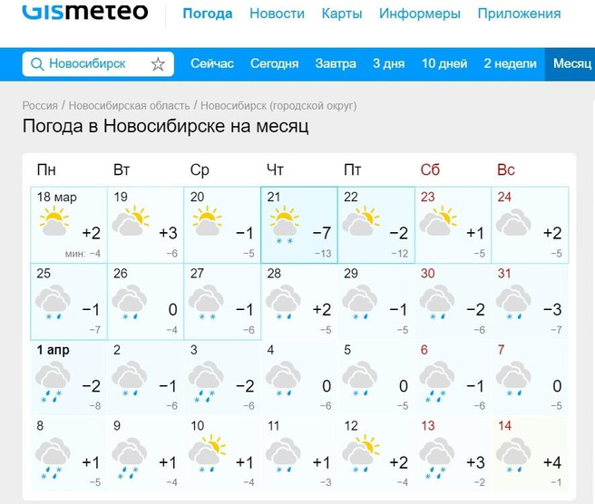 Прогноз апрель новосибирск