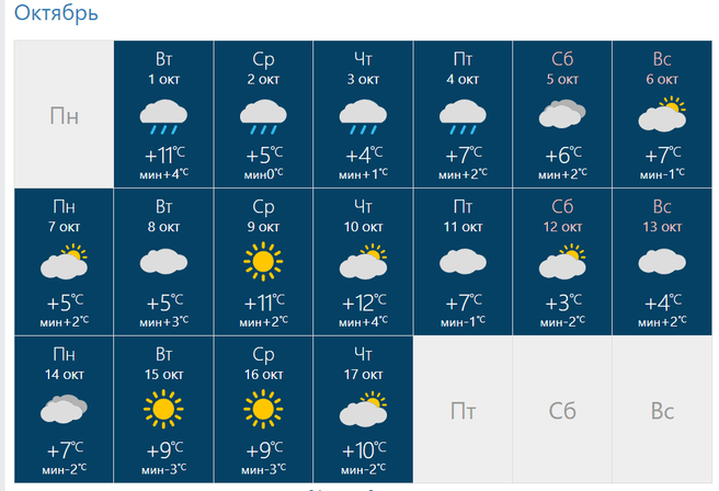 Прогноз на сентябрь урал