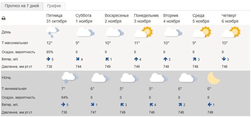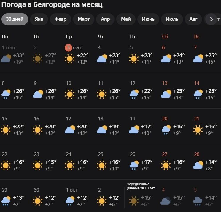 Прогноз погода в белгороде на 7