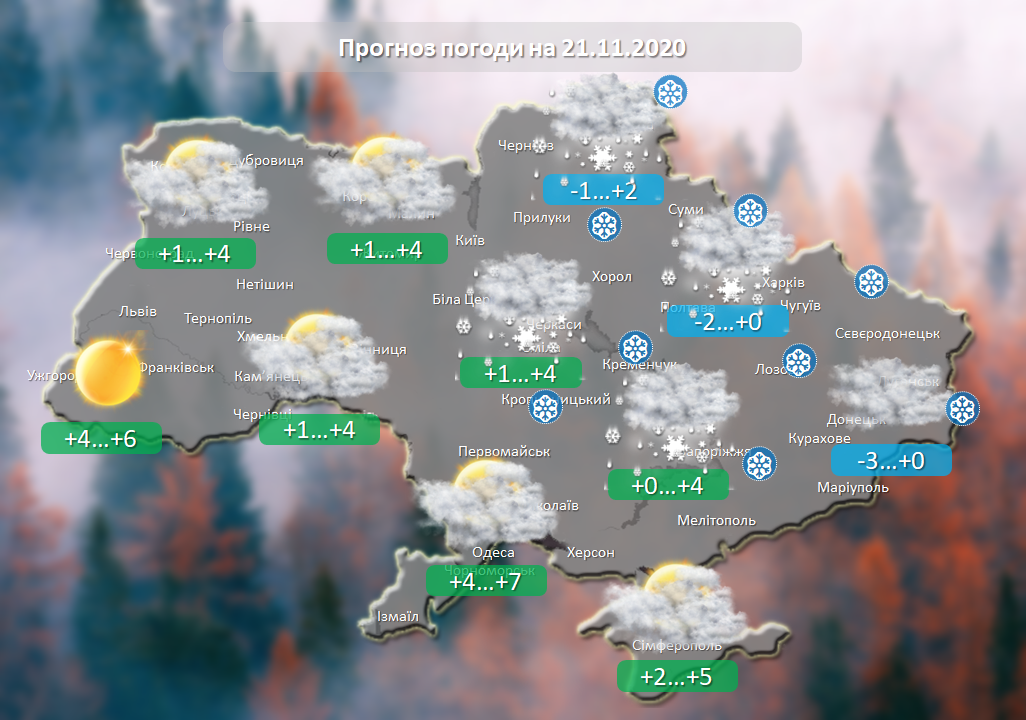 Прогноз погоди на 21.11.2020