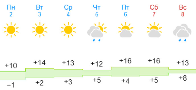 Прогноз погоды неделю назад