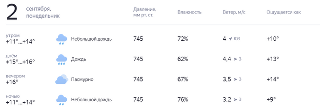 Прогноз погоды от 5