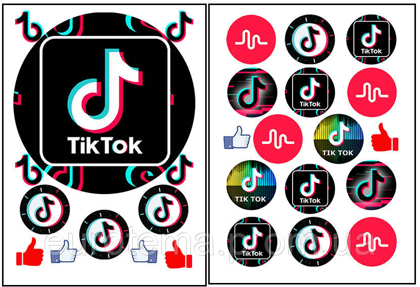 Набор вафельных картинок Тик Ток для торта и капкейков (2 листа А4) + декор-гель (100г) (5006) В наличии 150 грн
