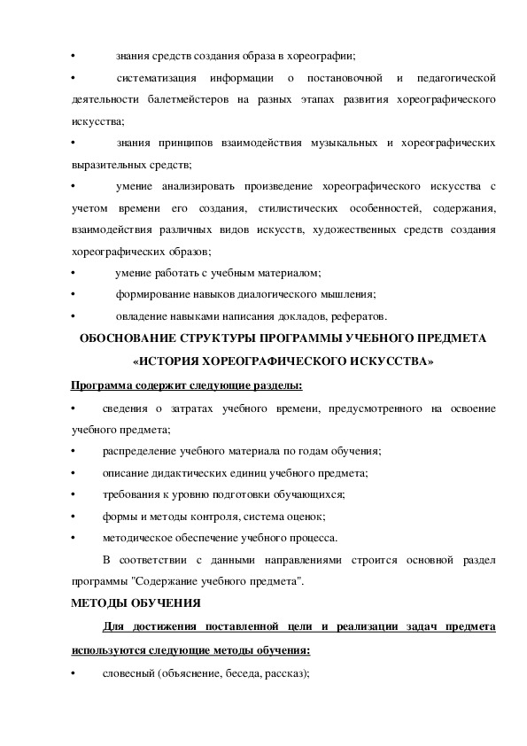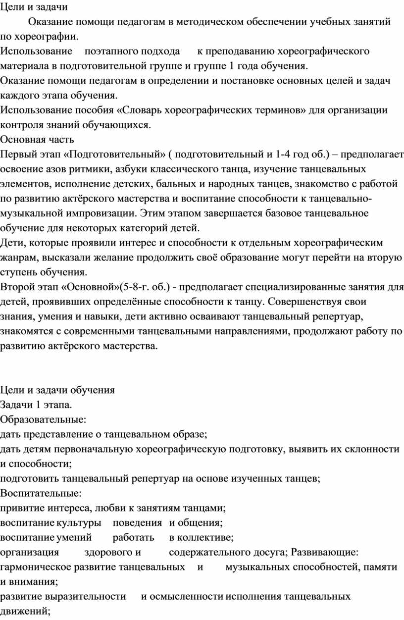 Программа хореографии в школе