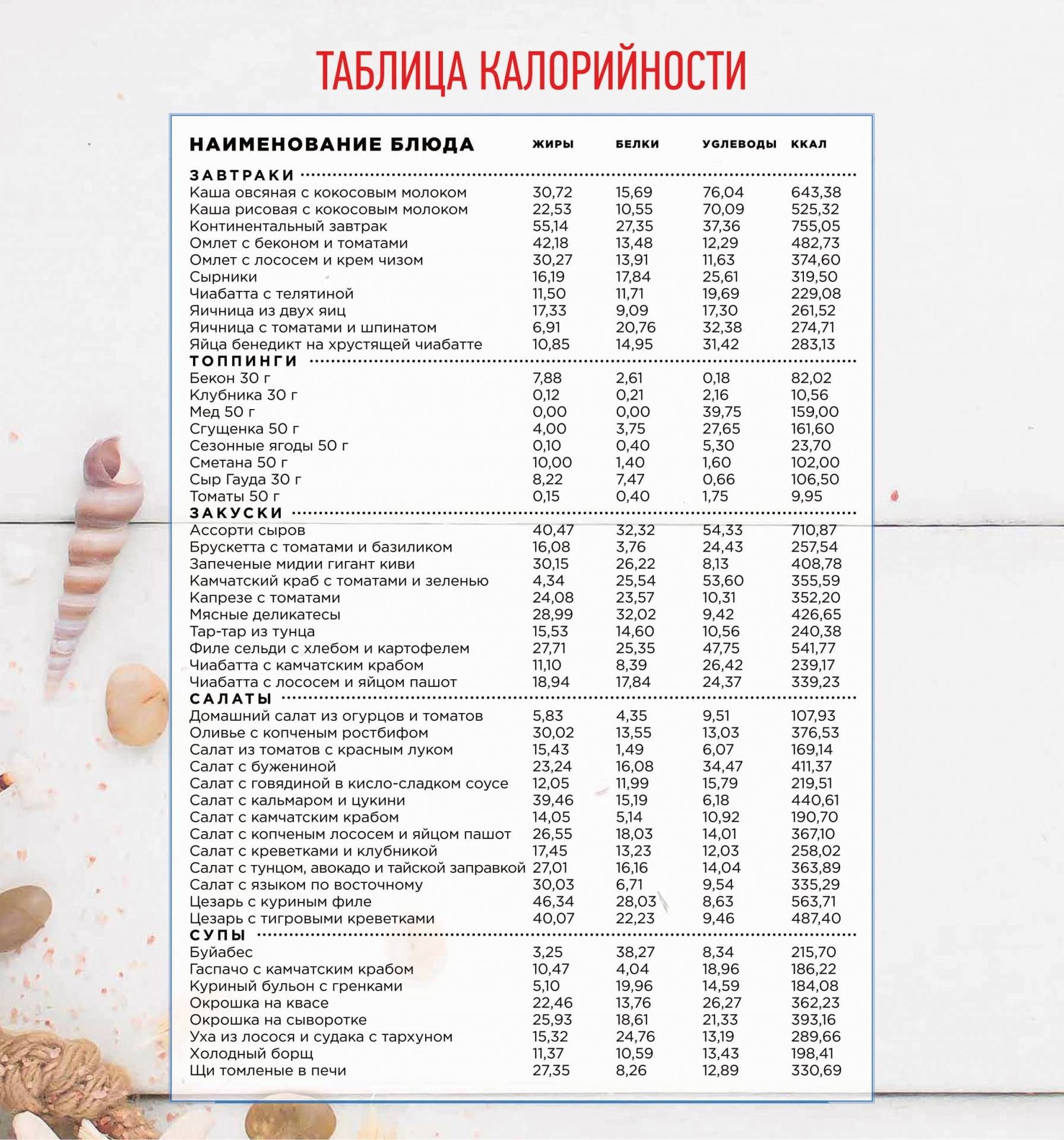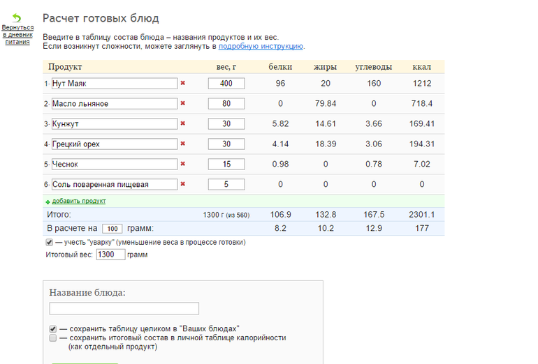 Программа калорийности блюд