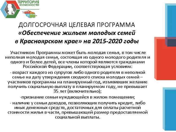 Программа красноярского края молодая семья