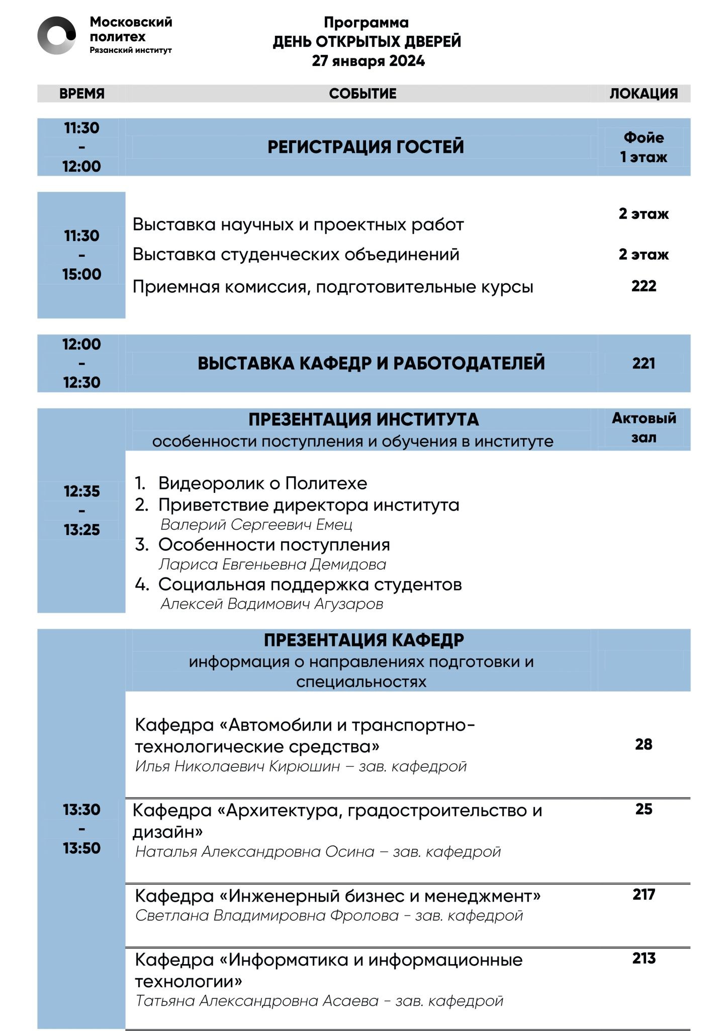 Программа на день курсы