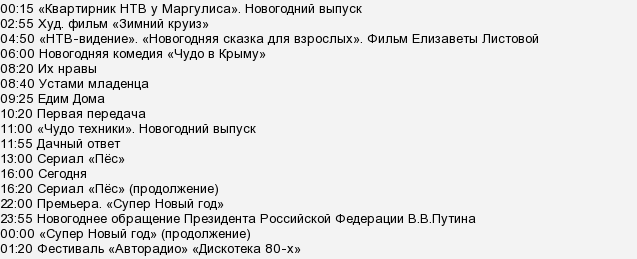 Программа передач на завтрашний весь день