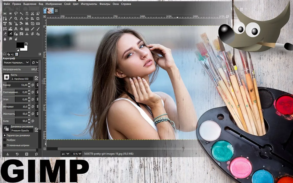 Бюджетная замена фотошопа, которая к тому же адаптирована под русскоязычного пользователя. В Gimp имеется достаточно инструментов для глубокой работы с изображениями и графикой (функционал для отрисовки графики, многослойность и наличие масок). Несомненным плюсом является полностью бесплатная лицензионная версия программы. К минусам стоит отнести достаточно сложный интерфейс, полностью разобраться в котором вряд ли получится без стороннего руководства. При необходимости можно расширить функции с помощью дополнительных модов и плагинов. Gimp в отличие от предыдущего редактора (ФотоМАСТЕР работает только на Windows) поддерживается на всех современных ОС, поэтому с установкой и использованием все в порядке.