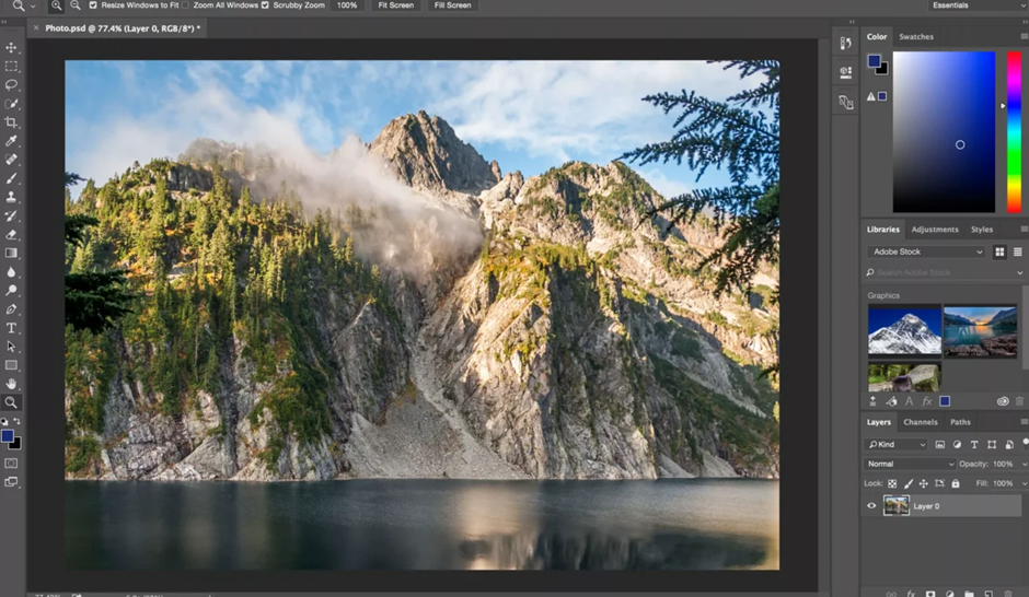 Одна из самых популярных программ для монтажа фото, которая по сей день является лидером рынка. Подходит она для выполнения самых узконаправленных и профессиональных задач, но в то же время не так сложна в освоении в силу огромного количества руководств в открытом доступе. Если необходима базовая обработка фото, наподобие цветокоррекции, то особого смысла ее осваивать нет, так как есть более казуальные программы. Помимо функционала, к плюсам можно отнести наличие поддержки на всех ОС. Минусом же является довольно высокая стоимость подписки, которую кстати, в связи последними событиями, оплатить проблематично. Но если есть желание, то в интернете можно без труда найти взломанные версии фотошопа, которыми пользуется основная часть всего рунета.