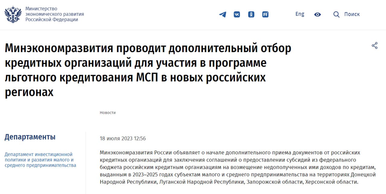 Программы льготного кредитования мсп 1764