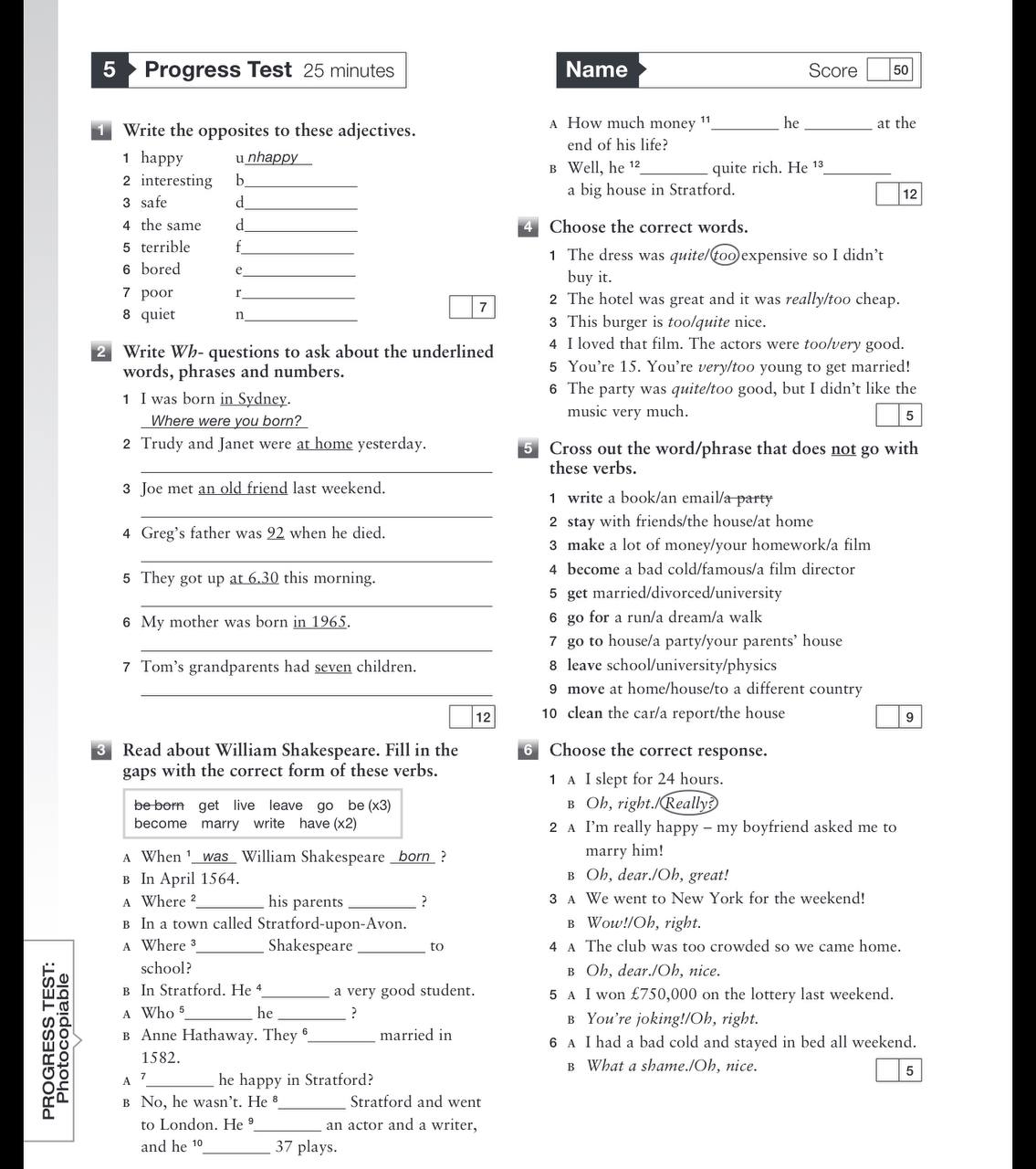 Progress test 7 9 класс ответы