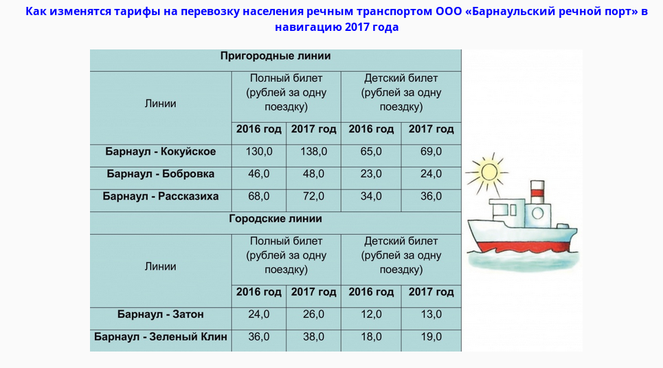 Прогулка на теплоходе барнаул расписание